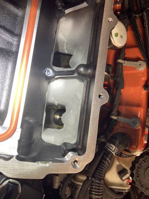 I ended up having to remove the JLT air box and snout and filter, would not work with the new position the TB ends up at. In the process of installing the Whipple air box I broke the motor actuator off the top of my chiller drag valve 🤦🏼♂️ was mounted to the valve with a plastic bracket. I had to massage a step into bottom of the Whipple air box with a heat gun to clear it, what a pain, Now I’m going to have to machine a new bracket out of aluminum or something so right now my chillers in drag mode only which is no biggie. This morning starting on the fuel bumps and then hopefully I have a belt that fits and then test ride hopefully